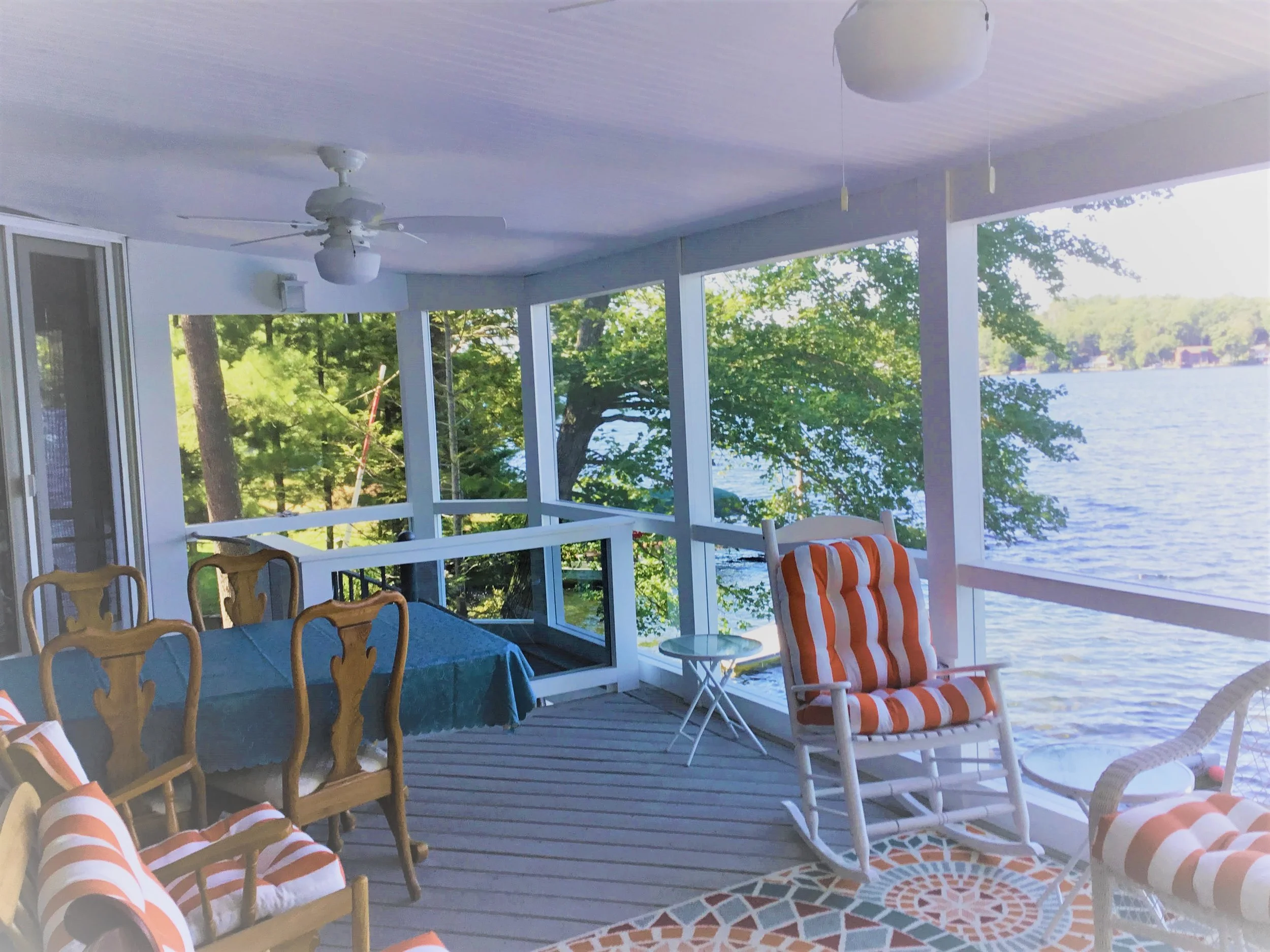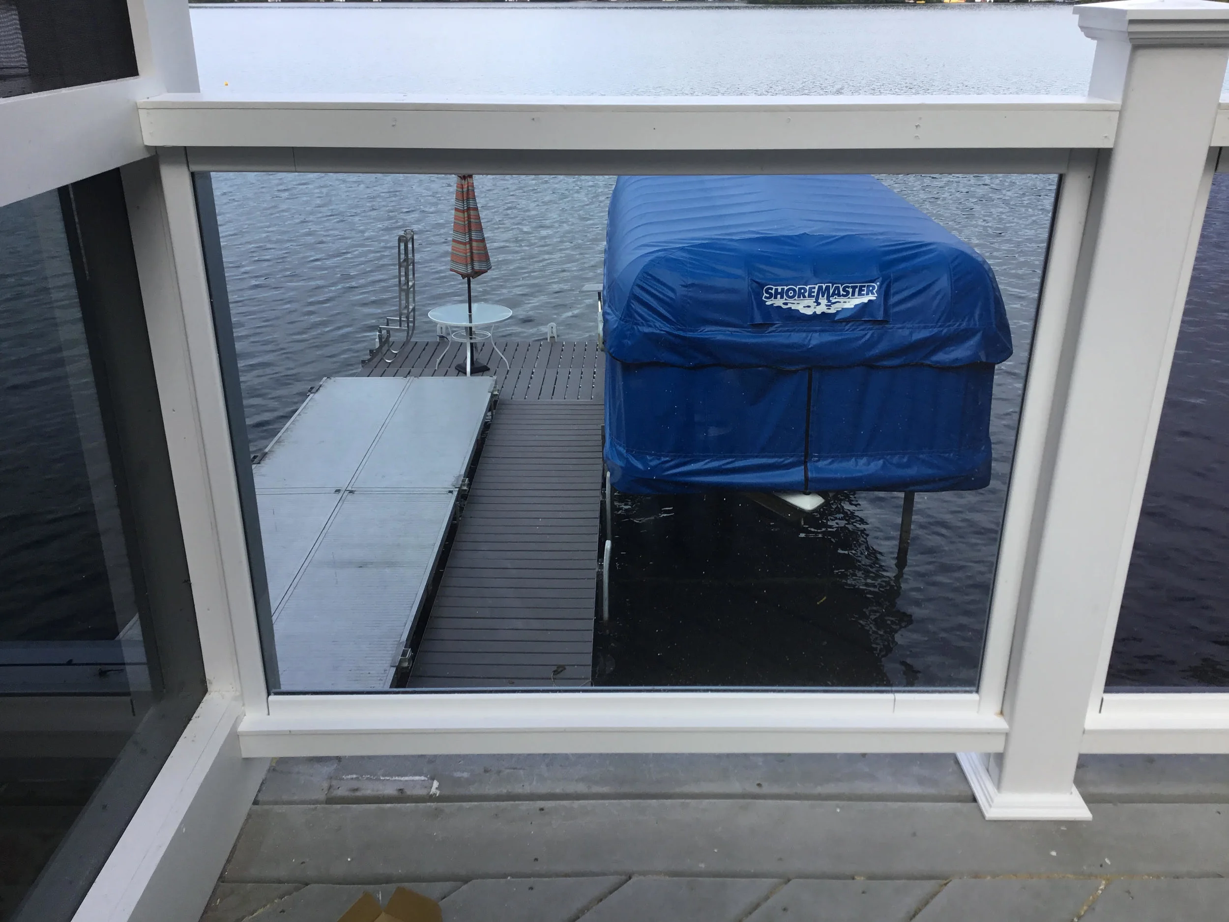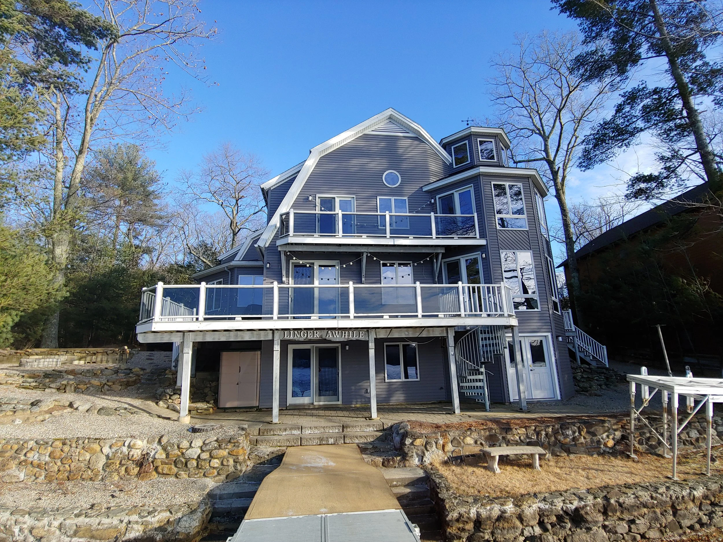CORE Remodeling Services added a three-season screen and glass panel room to this great house on Big Alum Pond/Lake. Deck was rebuilt with all new pressure treated supports to accommodate a new roof with balcony style Trex composite deck with white composite railings with New England style post caps on the roof off the master bedroom overlooking the lake. We used 9/16” tempered grey tinted laminated glass panels for the upper level deck and lower level of the screen room to allow perfect views of the great scenery of the lake. We also enclosed the lower level patio to provide a great space for hanging rocking chairs and more space to enjoy the great outdoors, with no bugs. Replaced old railings leading to the spiral staircase with new composite railings. Ceilings were finished with vinyl bead board ceilings with ceiling fans. All exposed wood was wrapped in white composite materials to make this a maintenance free space. The final touch from CORE to make the project complete, was to hang the family sign naming their home so they can enjoy and “linger awhile”.
