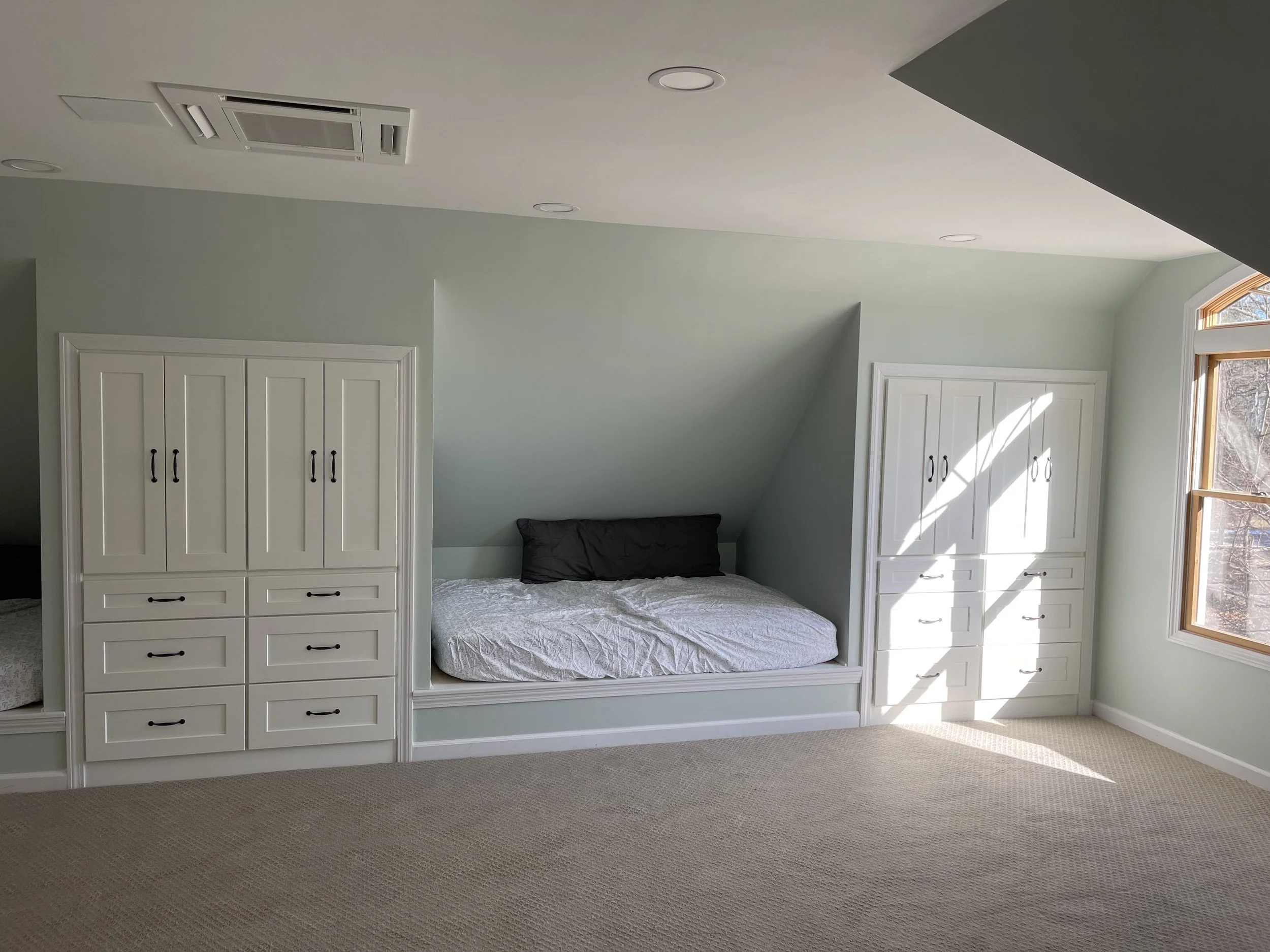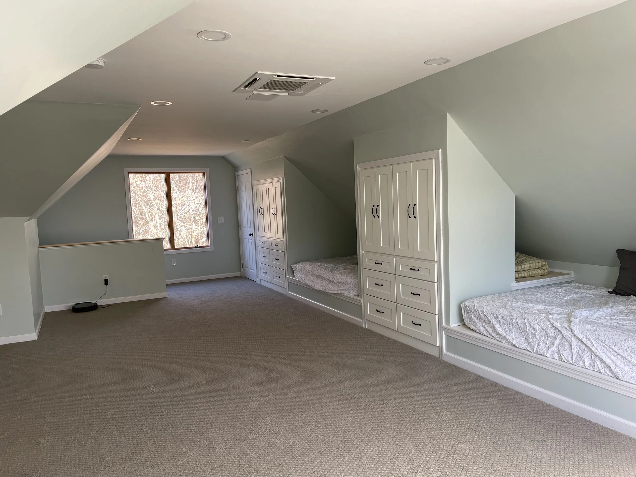 Garage/Attic Renovation / Remodel - Holliston MA - This stunning attic transformation in Holden, MA, showcases the power of thoughtful design and expert craftsmanship. What was once an underutilized space above the garage has been completely renovated to provide both functionality and style.