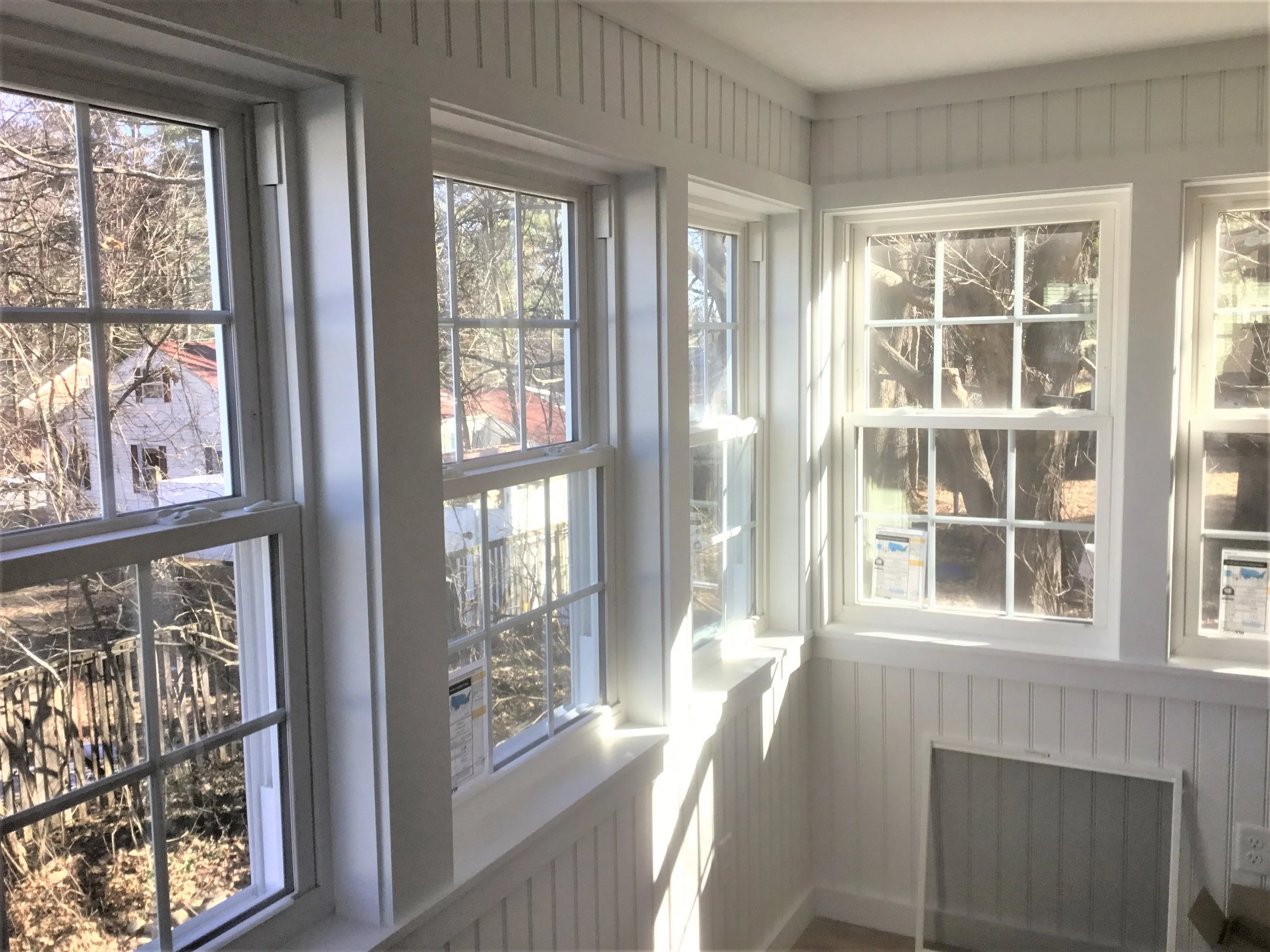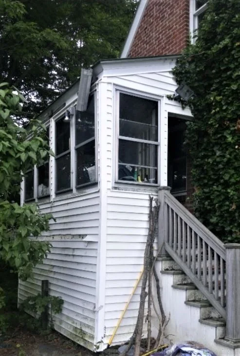 Remove existing porch, pour a new foundation, finish exterior to match existing home style, under porch storage, Provia windows and door, Trex composite stairs and railings