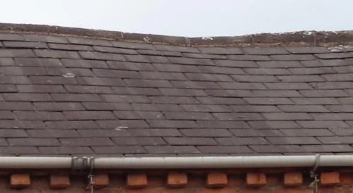 If you own an older home it’s even more important to examine the roof. Newly built homes are designed to hold specific amounts of snow due to the national and state building codes, but it’s still important to examine them. Snow melts and freezes on the roof edges above the gutters, creating a wall of ice that forces water from melting snow and ice under the shingles and into the house. CORE Remodeling suggests that you look for roof-rafter sag (see photo). If you can see a dip, curve, or swag on the peak when standing in the street, then you have a problem with your roof. The lines of your roof should be straight. Also, it’s important to listen during the winter for creaking, cracking, or popping sounds. If your roof resembles the picture below, it’s time for one of the three R’s - Replacement, Reinforcement or permanent Repair.