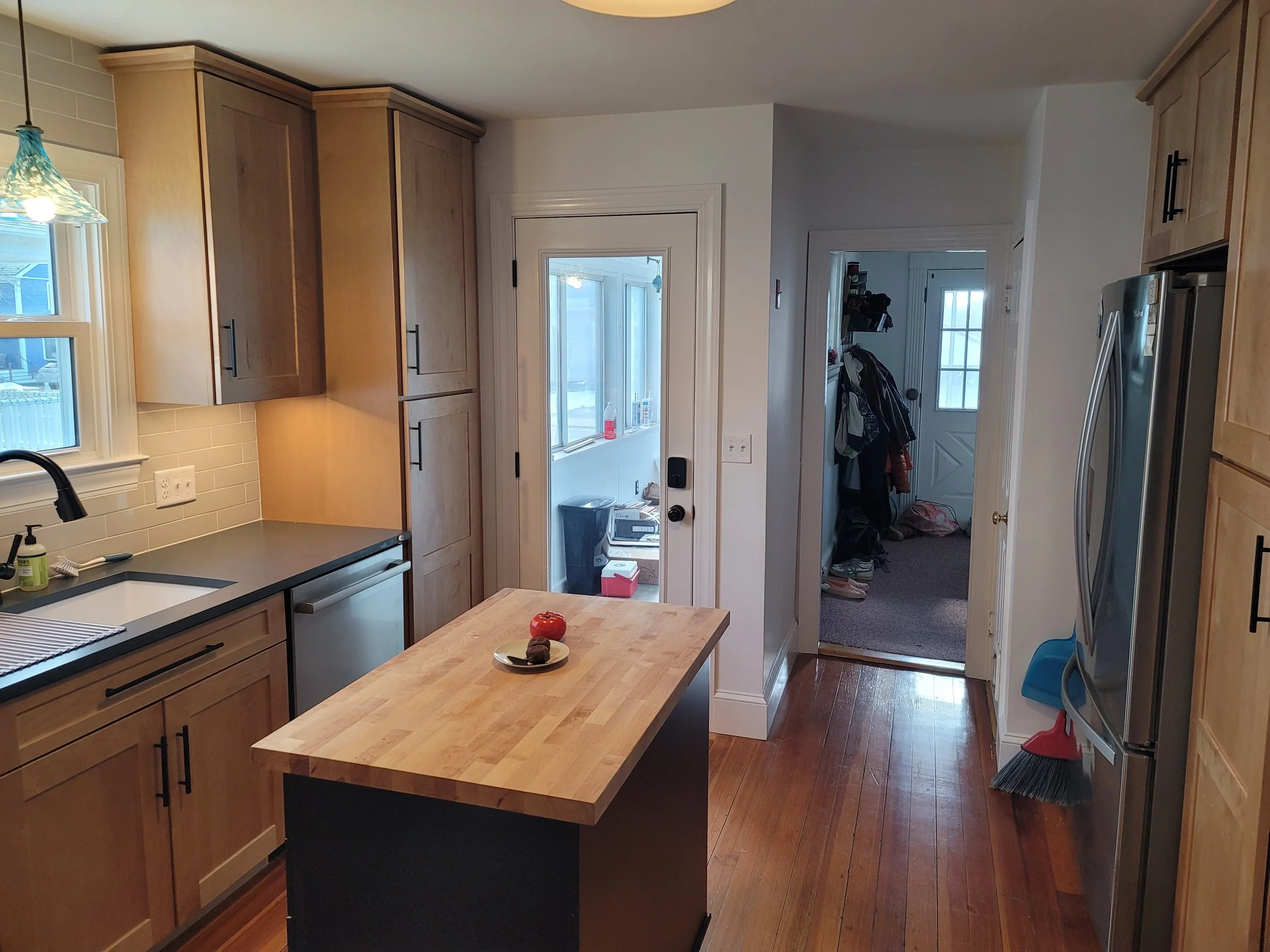 This renovation project in Maynard, MA involved both a kitchen and full bathroom overhaul, designed to enhance functionality, aesthetics, and modern convenience. The project required extensive structural updates and thoughtful design changes to create open, welcoming spaces while ensuring the home was up to date with modern electrical and plumbing standards.