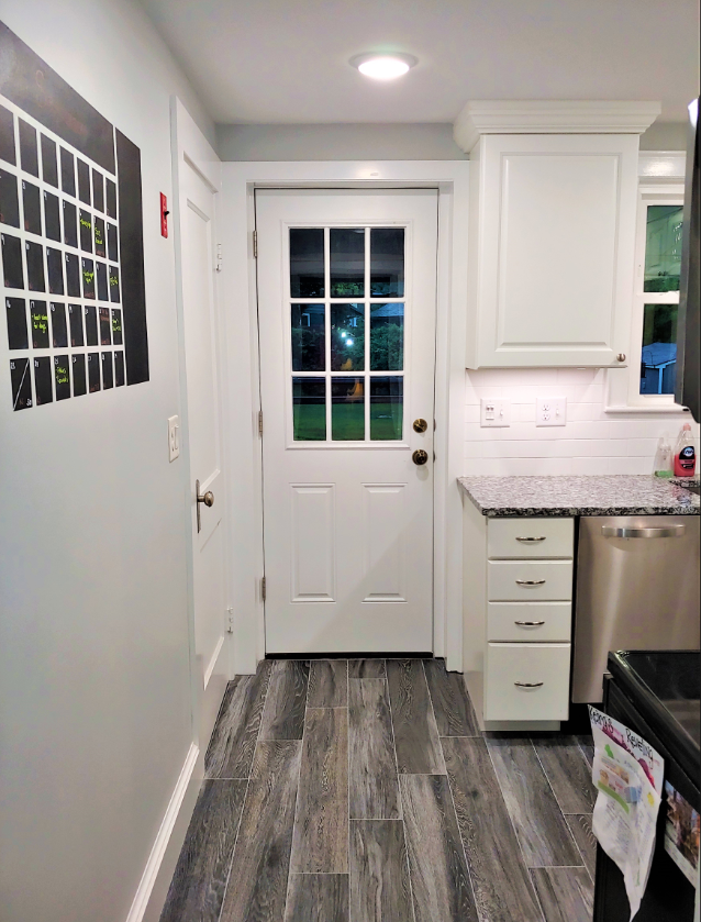We installed JSI Mid Continent Cabinets featuring the Towne-style doors. These cabinets are crafted from maple wood and finished with a crisp white paint, offering a clean, classic aesthetic that brightens the entire kitchen. The soft-close doors and drawers add a touch of luxury and practicality, ensuring smooth operation and longevity.