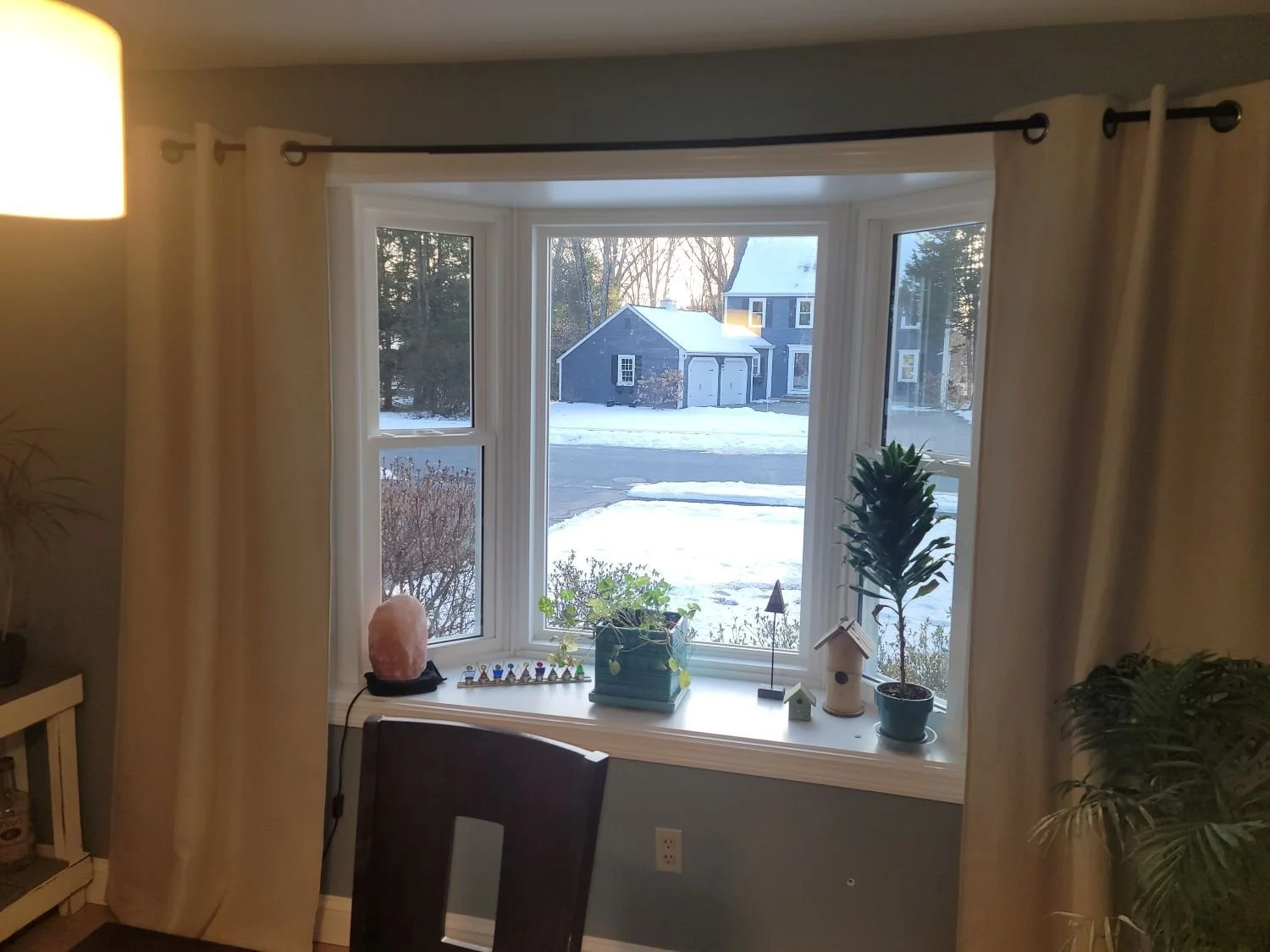 This brand-new ProVia bay window brightens the formal dining room and adds energy efficiency and curb appeal. Fun fact: this window became our entry point for maneuvering one of the heavy steel support beams into the home during the structural phase!