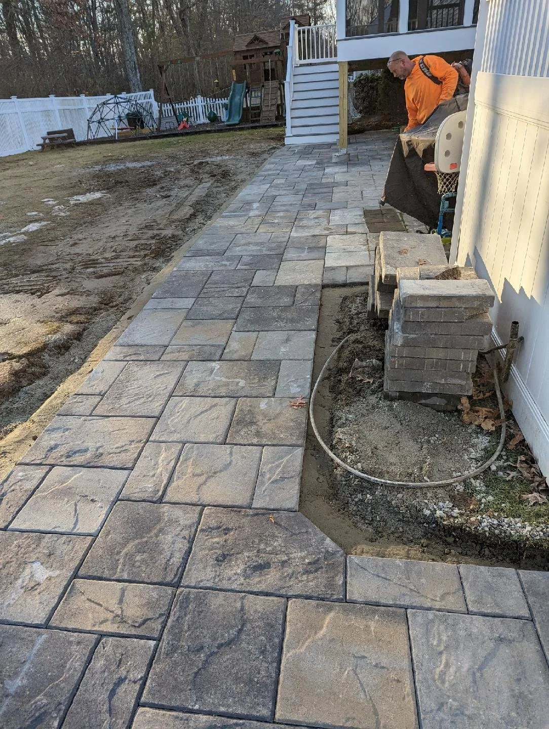 Built a 10' x 19’ screen room with a 10' x 7’ deck approximately 6’ feet off the ground with one set of stairs to ground. Installed Trex Select decking in Pebble Gray Grooved with hidden fasteners and railings in white vinyl. Installed the ceiling in white vinyl bead board. All exposed framing was wrapped in white PVC. Installed patio pavers below screen room. Framed the underside and finished with a double barn door. Installed Screen Eze screening with better vue screens. Siding to match the existing home style. Screen room has 6 low profile led ceiling lights, one ceiling fan with light, and four outlets, one exterior light and outlet. Installed one utility outlet and light with switch in storage area. Used Techno Metal Post footings.